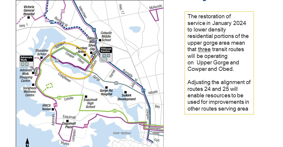 To give your feedback on how you want to see transit in the Gorge/Tillicum area, please go to: https://engage.bctransit.com/january-and-april-2024-service-change-survey